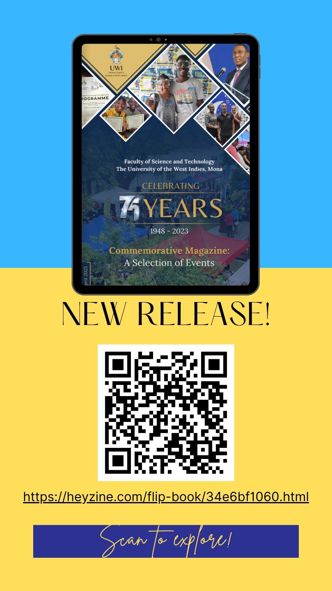 The Faculty of Science and Technology (FST) at The University of the West Indies (UWI), Mona, proudly published a commemorative magazine to celebrate The UWI’s 75th anniversary observed between January and December 2023. Circulated during Semester 2, 2024/2025, the magazine served as a special tribute to the University’s milestone while highlighting the Faculty’s own journey and accomplishments.