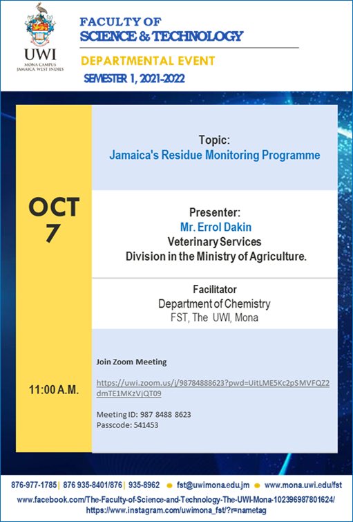 FST Thursday Chemistry Seminar | Jamaica's Residue Monitoring Programme