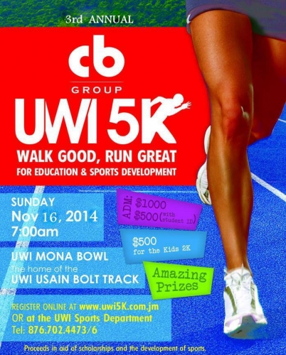 Nov 7 2014 - 12:20am - 11:59pm Don't be left out, register today! www.uwi5k.com.jm