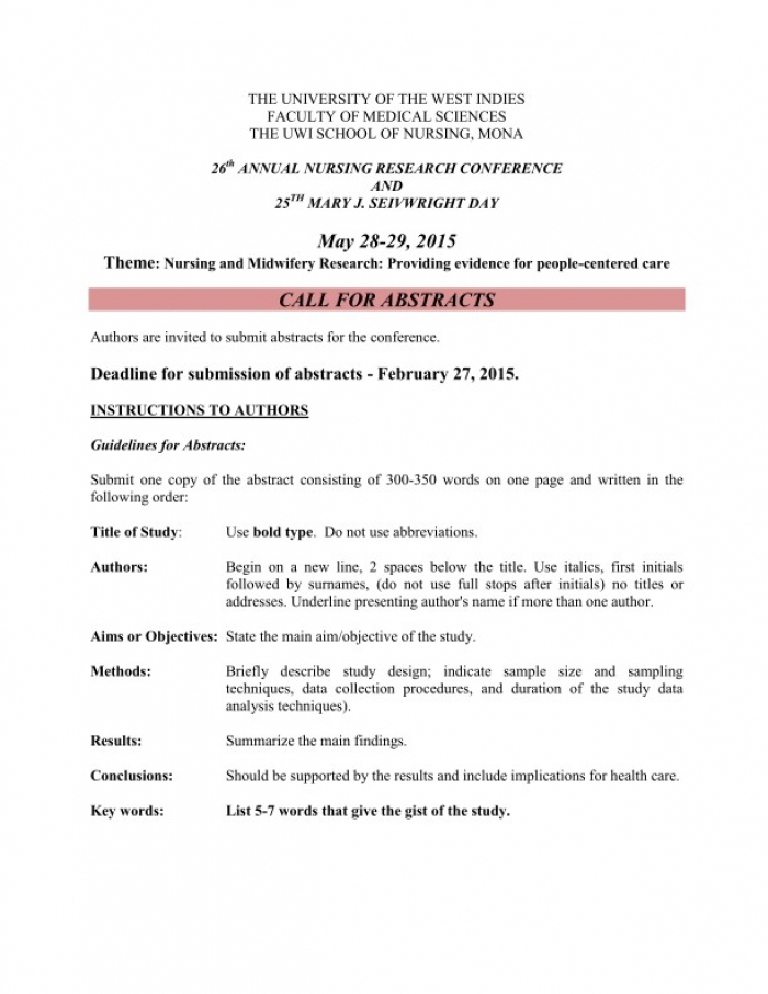 Submit a copy of the abstract by email to uwisonresearchsupport@uwimona.edu.jm with email subject caption: Abstract for Nursing and Midwifery Conference, 2015